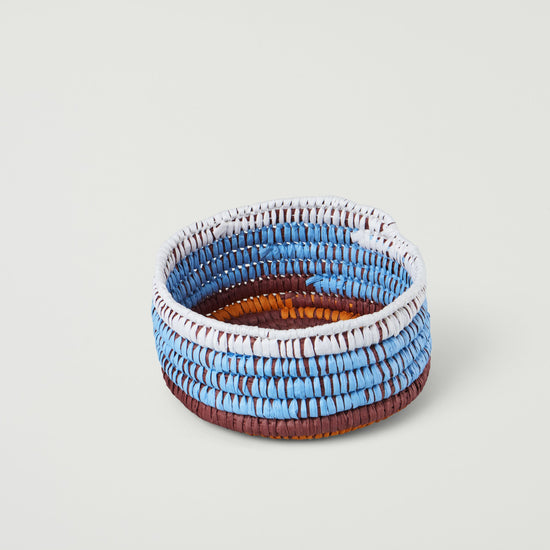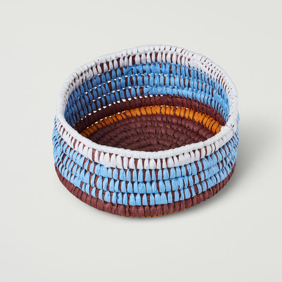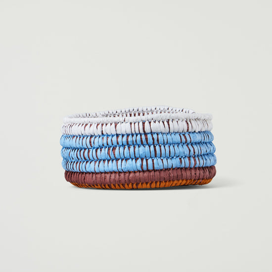 Inspired by Gugurrgaagaa (Kookaburra), this basket has been weaved using the coil weaving style. Gugurrgaagaa has a strong relationship with Yarray, the Sun, and has been given the responsibility to announce Yarray's arrival every morning. Gugurrgaagaa also has a great sense of humour and can be heard laughing to themselves or others.
