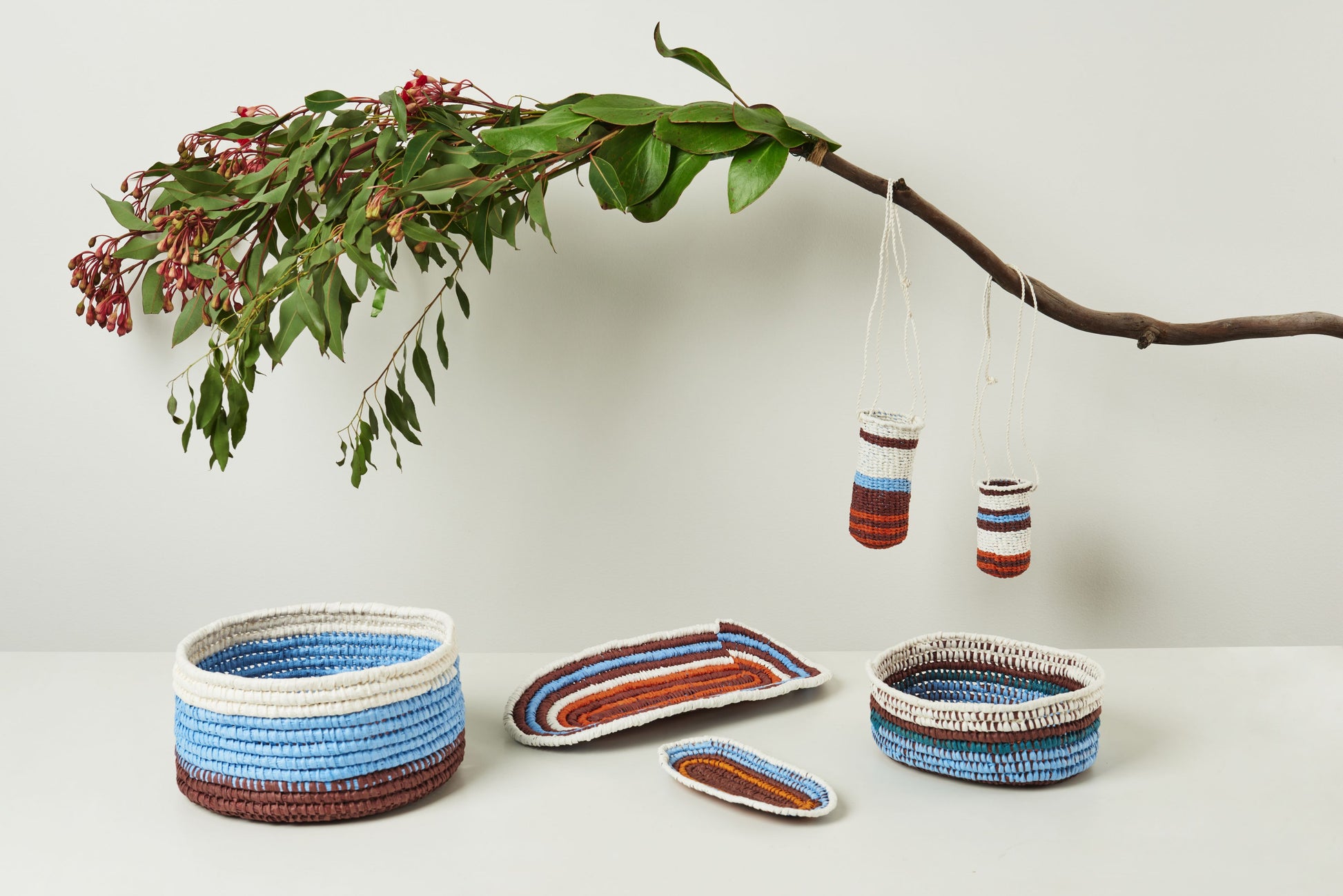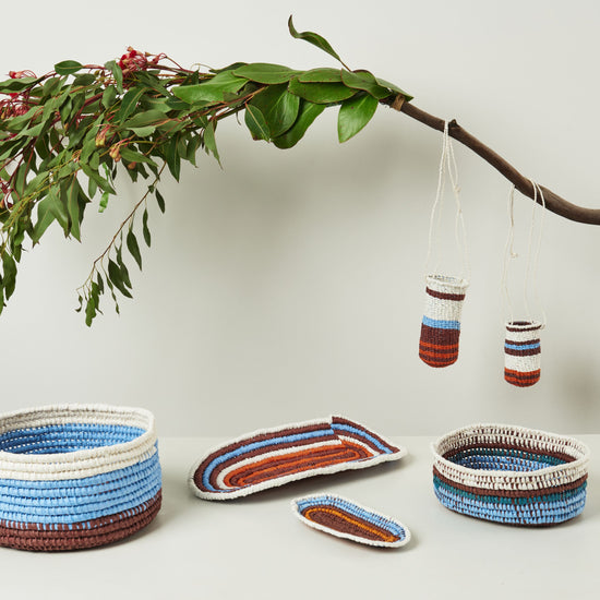 Each piece is unique and handmade on Gomeroi Country (Tamworth, NSW) by Gomeroi women who support the wellbeing of their Community through the continuation of their ancestral weaving culture.