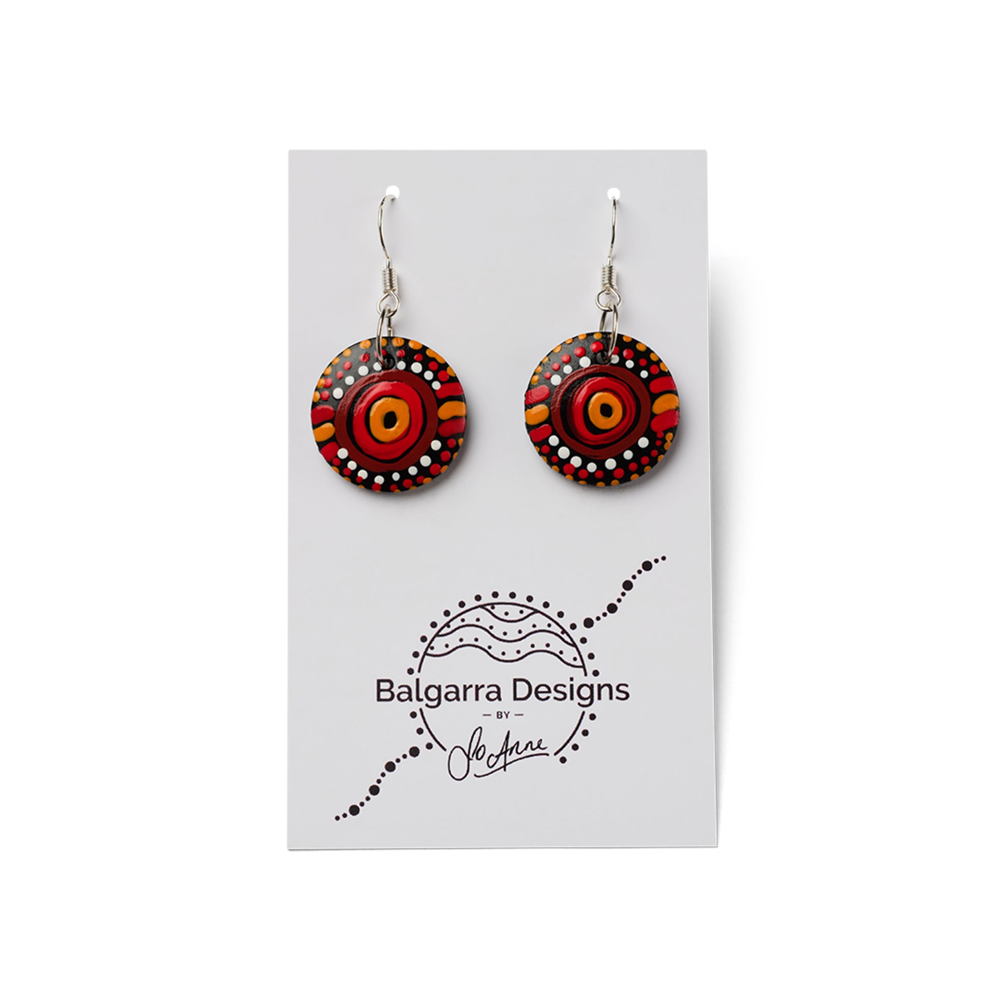 The Journey small wooden earrings are individually designed and hand painted before being finished with gloss and stirling silver hooks.