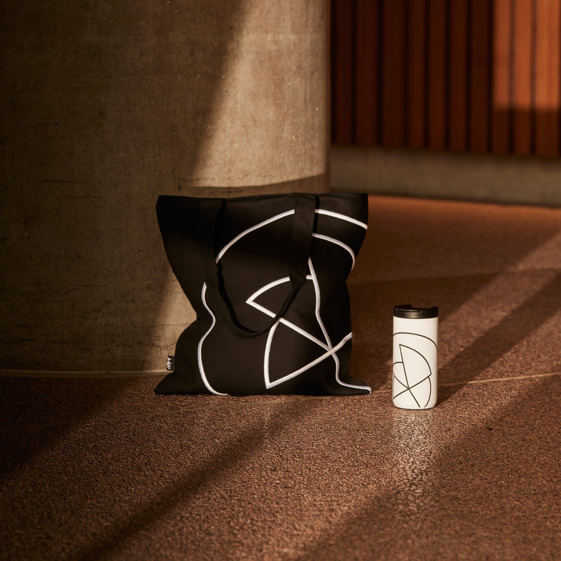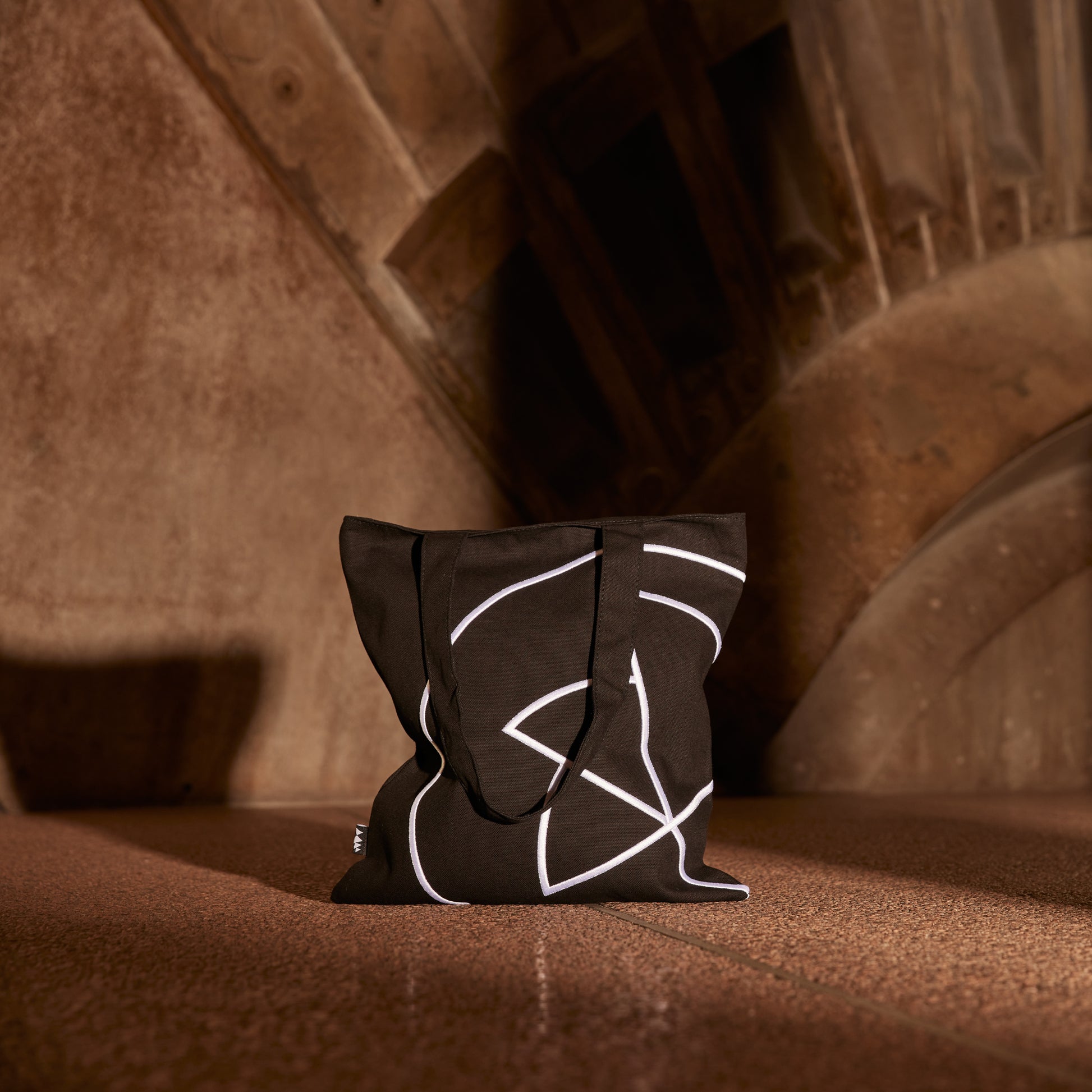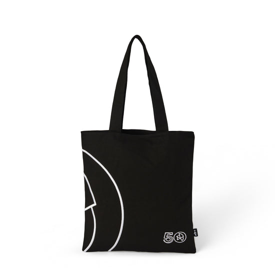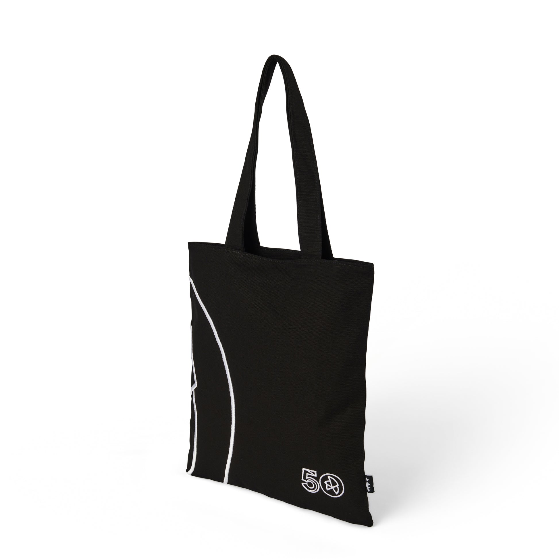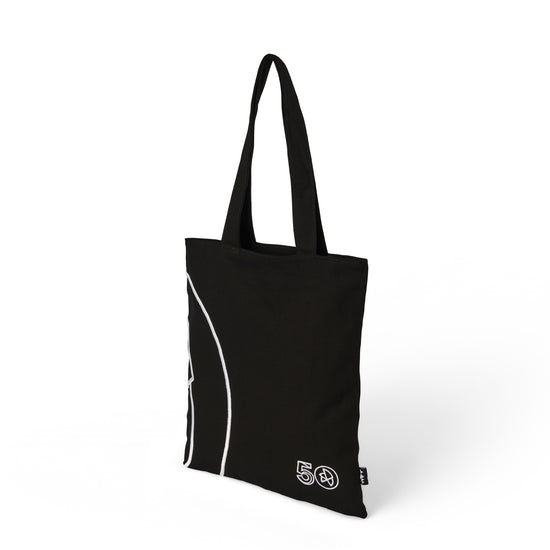Celebrate our 50th anniversary with this black canvas totebag featuring Jorn Utzon's Spherical Solution - the principles of spherical geometry that allowed the Sydney Opera House to be finally realised. The Spherical Solution is embroidered in black onto the bag and the long straps makes it easy to carry on your shoulder. The inside of the bag includes a spill-proof lining and side pocket.