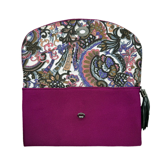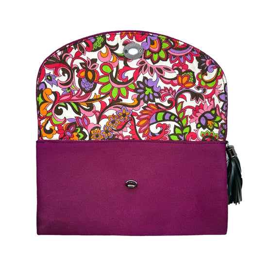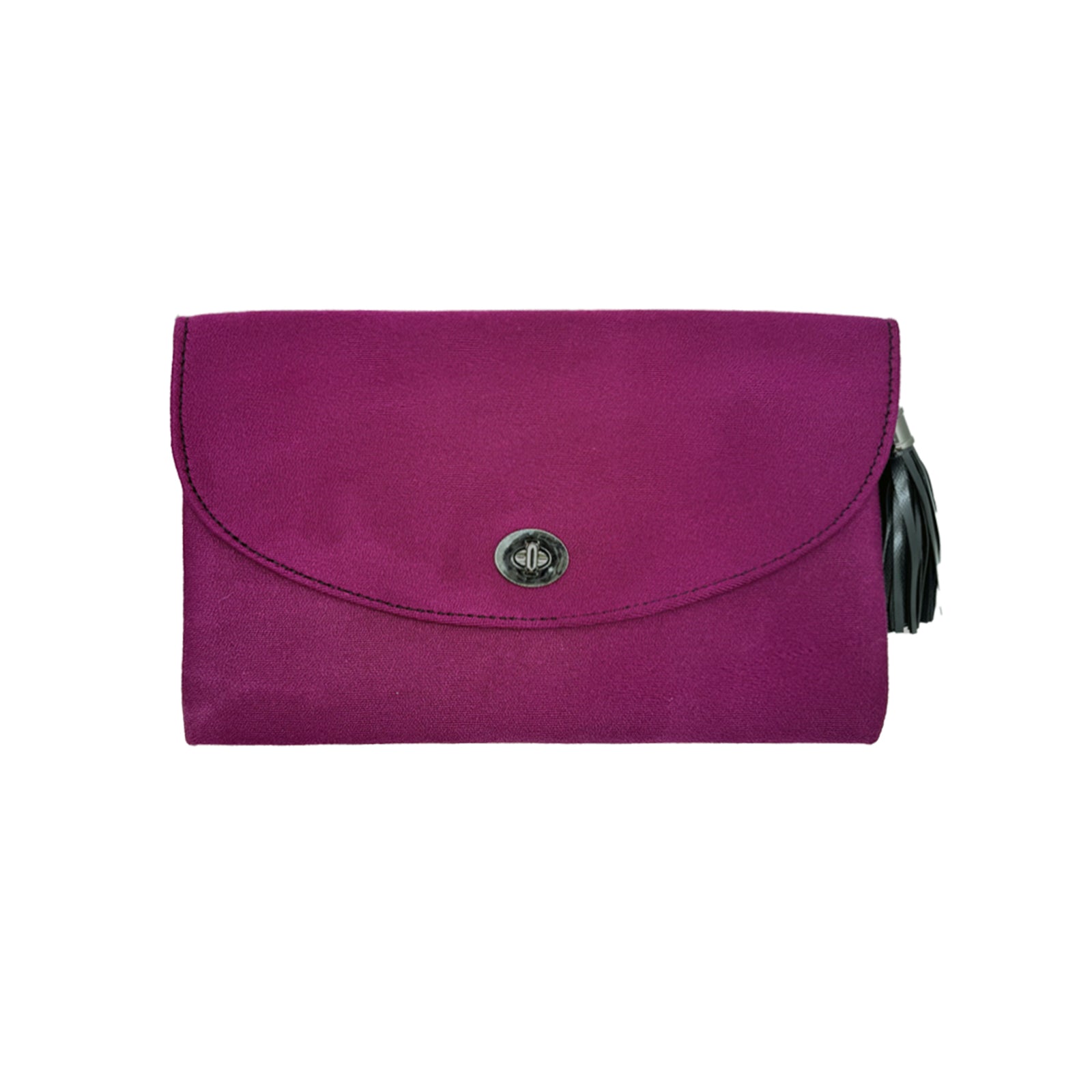 This clutch has been hand-made using 100% repurposed material including fabrics from our Concert Hall purple seat upholstery covers.