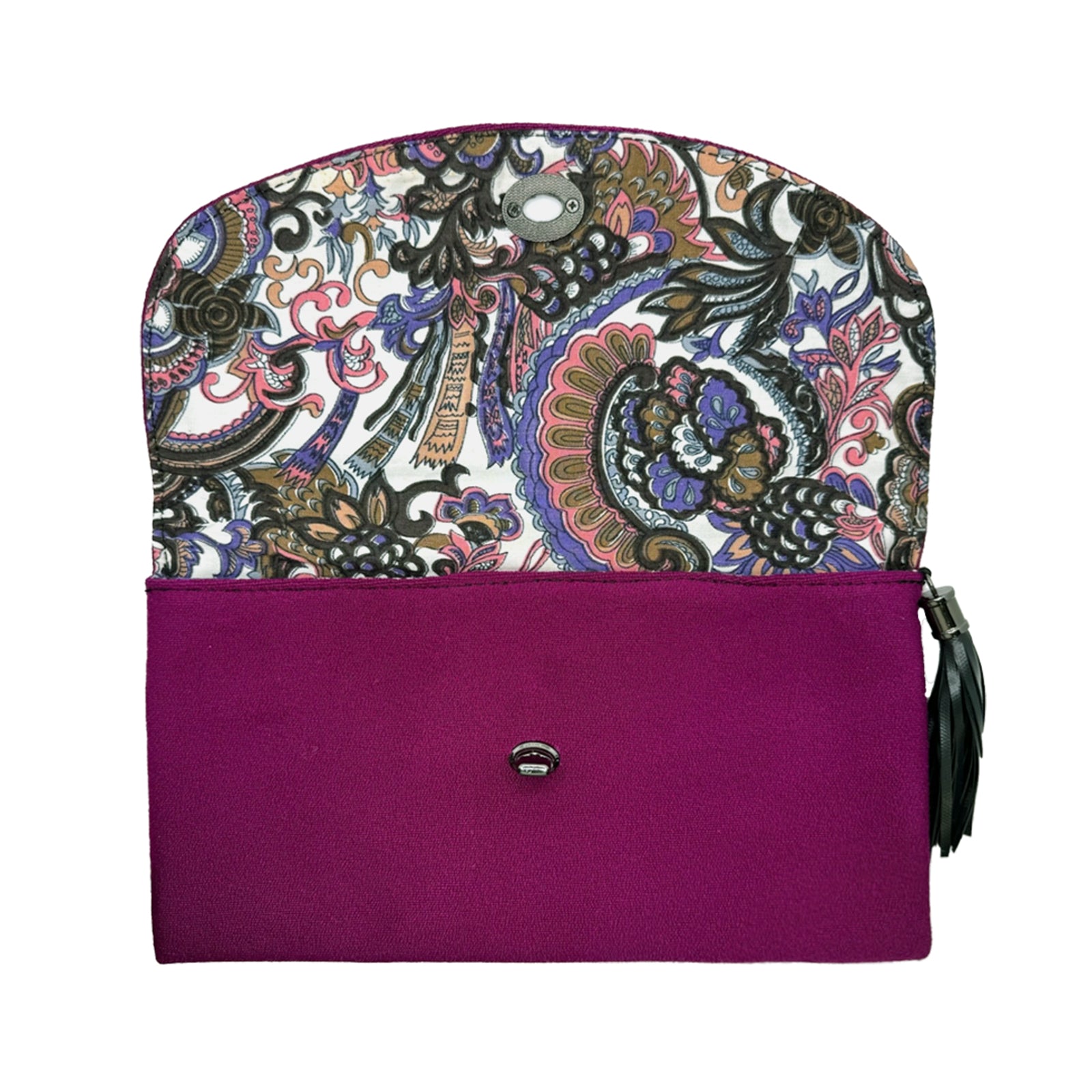 The lining of each clutch will vary and are a selection of 1970s inspired repurposed materials. The images of clutch liner are for reference purposes only. You may receive a different print (clutch liner) to those pictured. The clutch will be picked and packed by our store team member without prearrangement. As the clutch has been made by hand, there may be slight imperfections on the material and stitching.