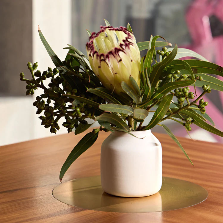 All Elph Ceramics pieces are handcrafted from Australian-made clays. Their vases are handcrafted on a pottery wheel rendering each unique. While similar, they may not match measurements exactly.